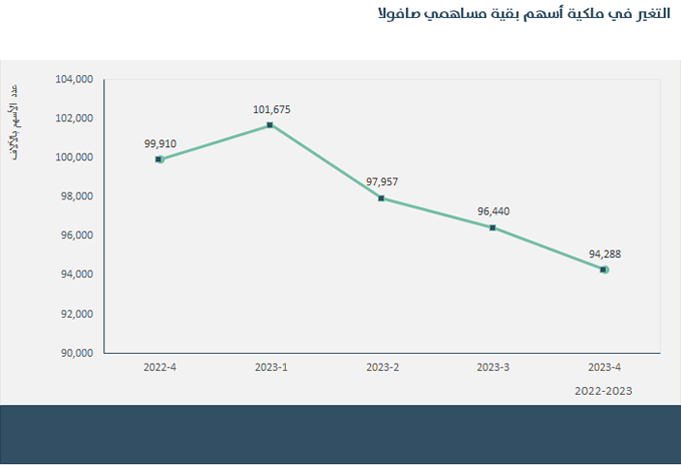 ملحوظة : الرسوم البيانية أعلاه تم مطابقتها مع المعلومات الواردة وفقاً لسجلات تداول (الواردة لمجموعة صافولا حول حركة ملكية المساهمين) للفترة الموضحة أعلاه.